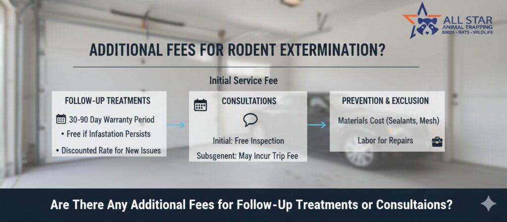 In such cases, additional fees for follow-up treatments or consultations are almost unavoidable. Exterminators must ensure complete eradication to prevent reinfestation.