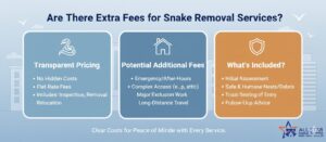 How professional companies manage extra fees is through transparency. Reputable providers explain possible add-ons before starting work. Asking directly, “Are there extra fees for snake removal services?” ensures clarity and prevents misunderstandings.