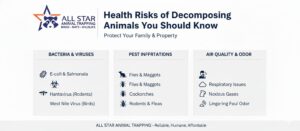 Decomposing animals inside or around residential and commercial properties pose serious health, safety, and environmental risks that should never be ignored. Whether found in attics, crawl spaces, walls, garages, or yards, dead animals begin releasing harmful bacteria, gases, and parasites within hours. These contaminants negatively impact indoor air quality and create hazardous living conditions. Property owners often underestimate how quickly decomposition escalates into a major health concern. Understanding these health risks helps homeowners, landlords, and property managers take timely action, prevent disease exposure, and protect long-term property value.