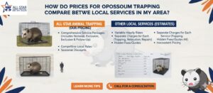 Prices for opossum trapping vary depending on local demand, infestation severity, and services provided. DIY trapping may save money, but it carries risks, while professional services ensure safe, humane, and legal removal.