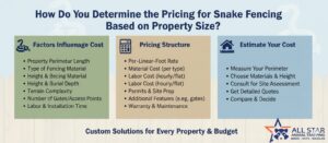 Understanding how to determine the pricing for snake fencing based on property size allows property owners to make informed decisions. Property size affects perimeter length, labor, materials, terrain preparation, and long-term maintenance. Larger properties naturally require higher investment, but strategic planning can reduce unnecessary costs.