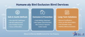Professional Humane Bird Exclusion Services offer safe, effective, and long-lasting bird management. They prevent property damage, reduce health risks, and ensure compliance with wildlife protection laws. By combining physical barriers, visual and auditory deterrents, and ongoing maintenance, property owners achieve permanent bird control.