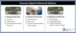 Professional squirrel removal services provide expertise that DIY methods cannot match. Professionals understand squirrel behavior, humane handling, and effective prevention techniques. This knowledge ensures safe and complete removal.