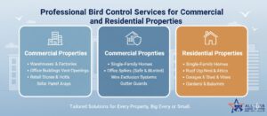 Apartments and condos benefit from professional bird control services that protect balconies, rooftops, and common areas.