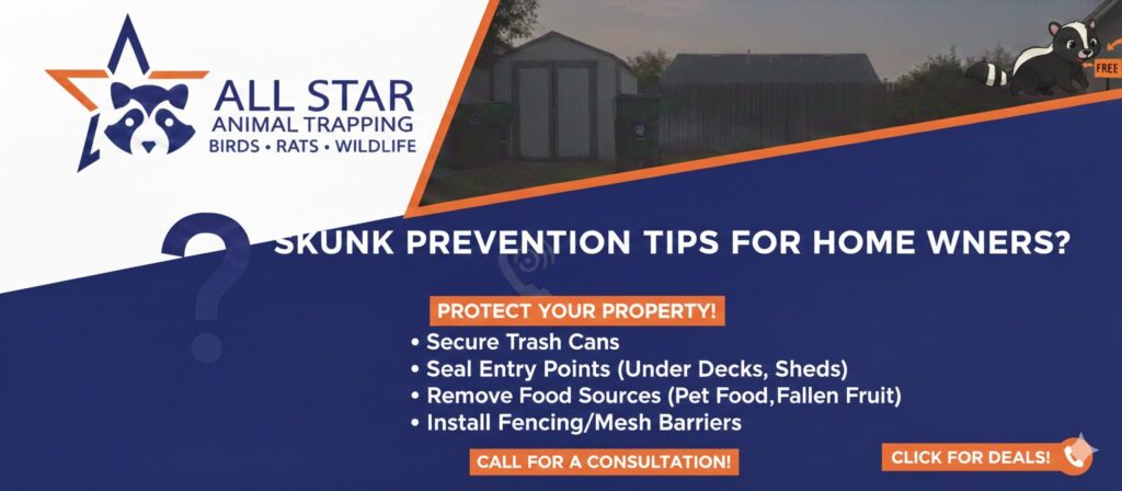 Open garbage cans, loose vent covers, and broken fences provide easy access. Inspecting these areas regularly is one of the first steps in skunk prevention for homeowners.