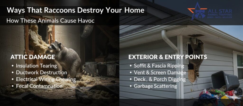 While raccoons may appear cute on TV, they are destructive intruders capable of causing significant damage to homes and businesses. From destroying insulation and leaving droppings to creating holes and chewing wiring, these animals pose both financial and safety risks.