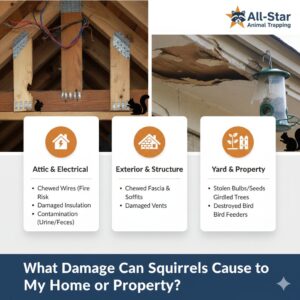 Once the structure is weakened, secondary issues like water intrusion and rot begin. Structural damage caused by squirrels often spreads faster than homeowners expect.