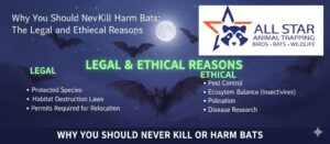 Attempting to harm bats often leads to unintended consequences, such as biohazards or legal violations. All Star Animal Trapping mitigates these risks, providing comprehensive solutions to keep homes safe and bat-free.